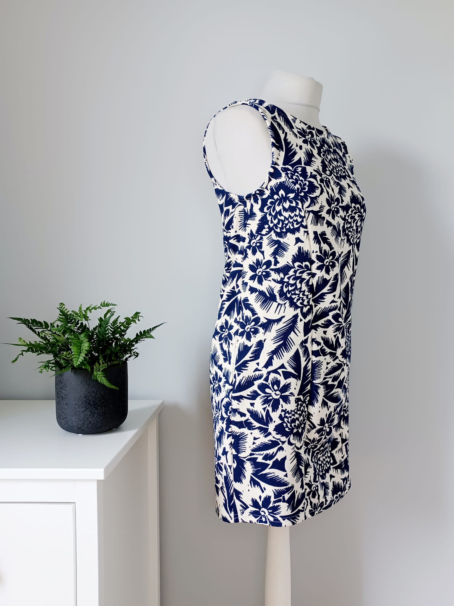 Biało granatowa letnia sukienka