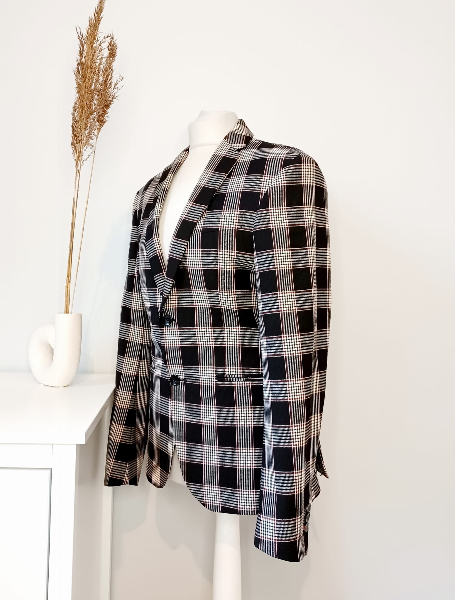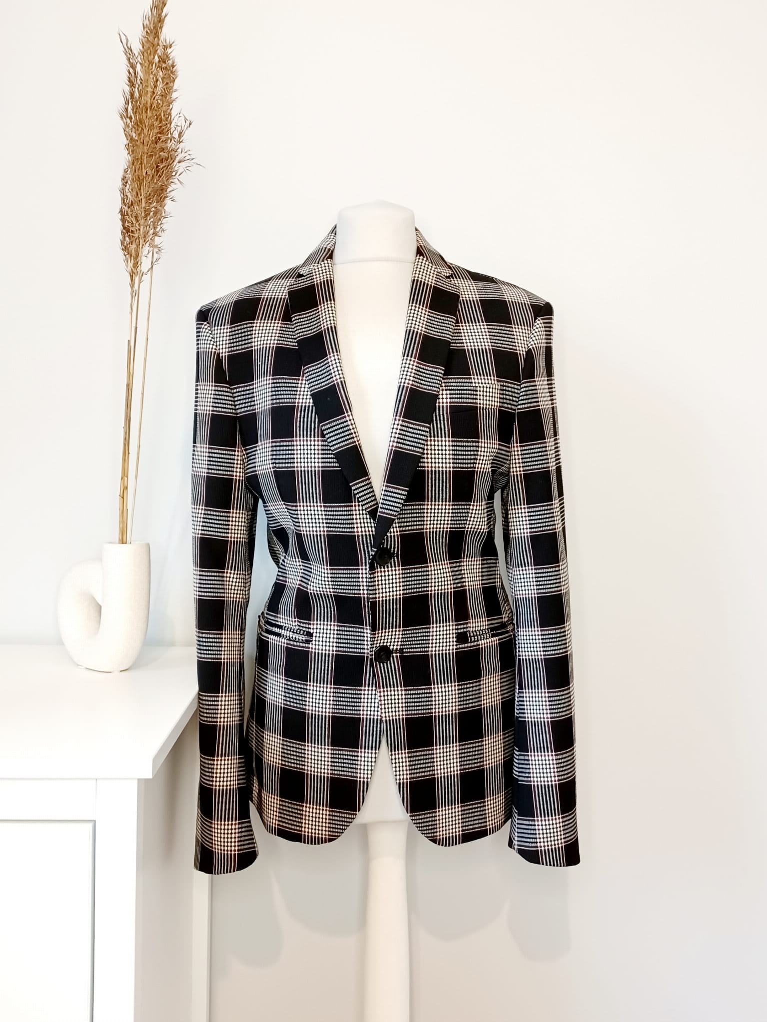 Cienka taliowana marynarka w kratę